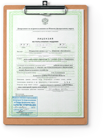 "Решаем задачи по лицензированию скважин любой сложности. Ваша чистая вода - наша забота!"